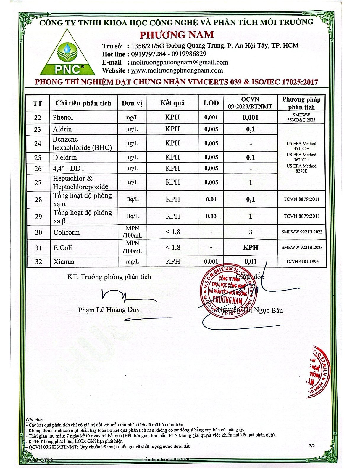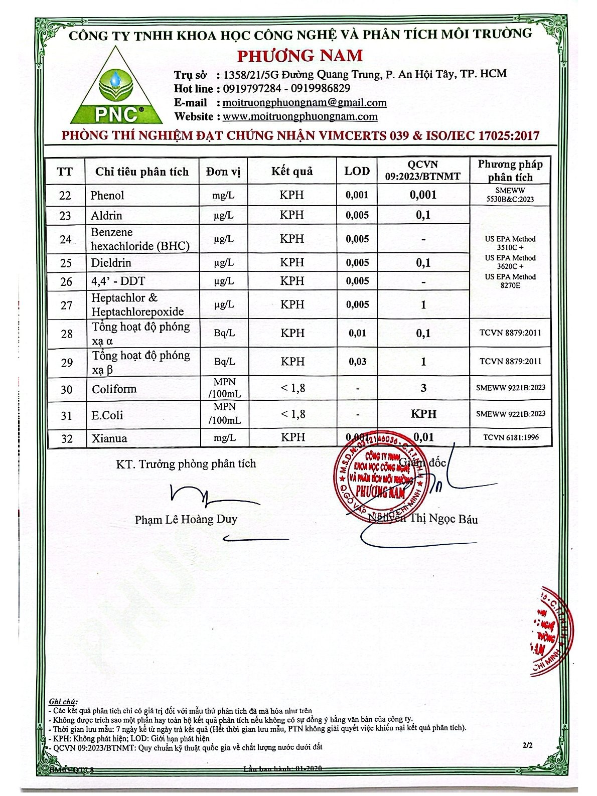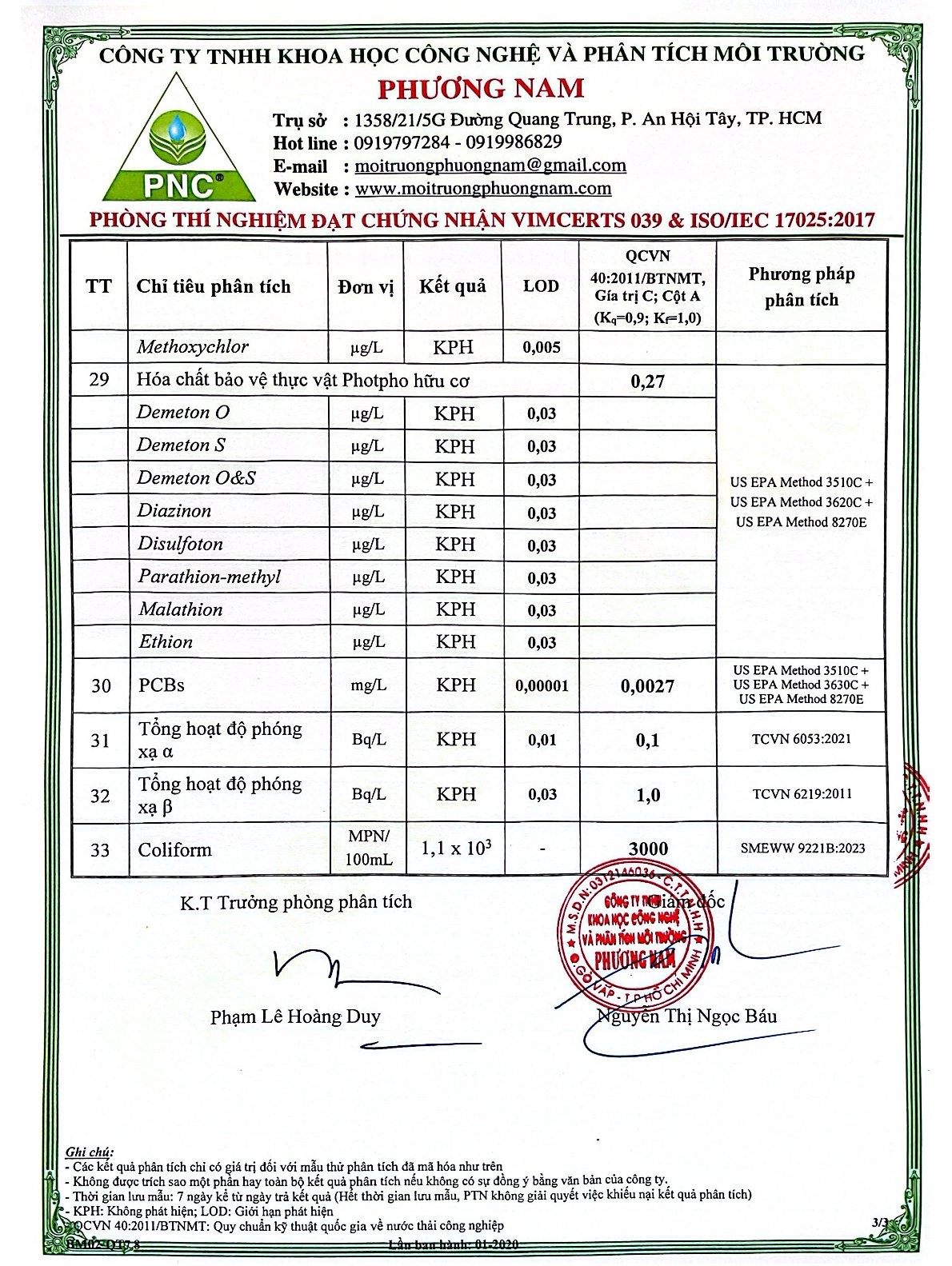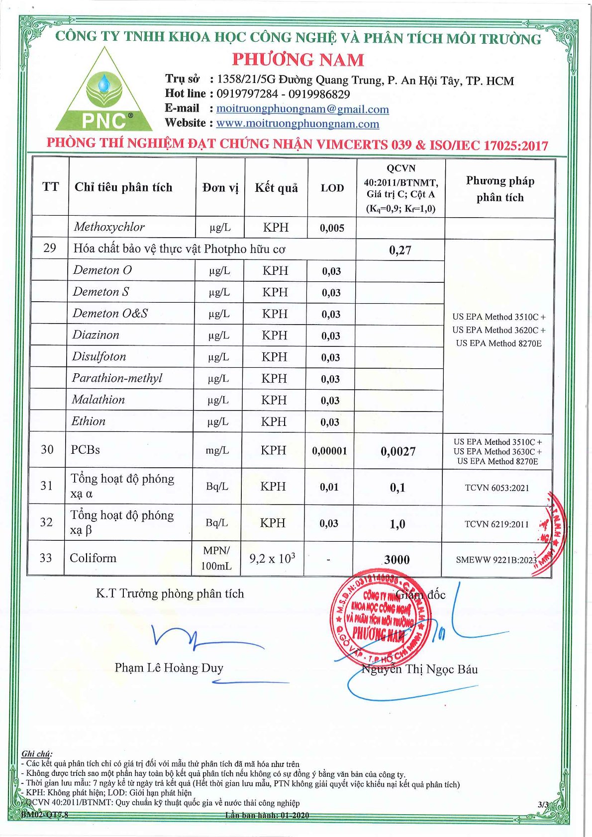Chất lượng nước thải định kỳ