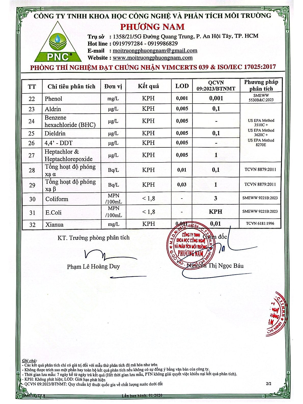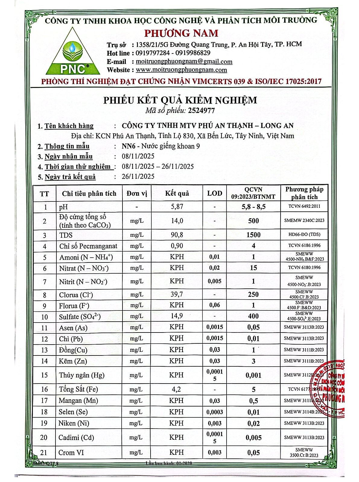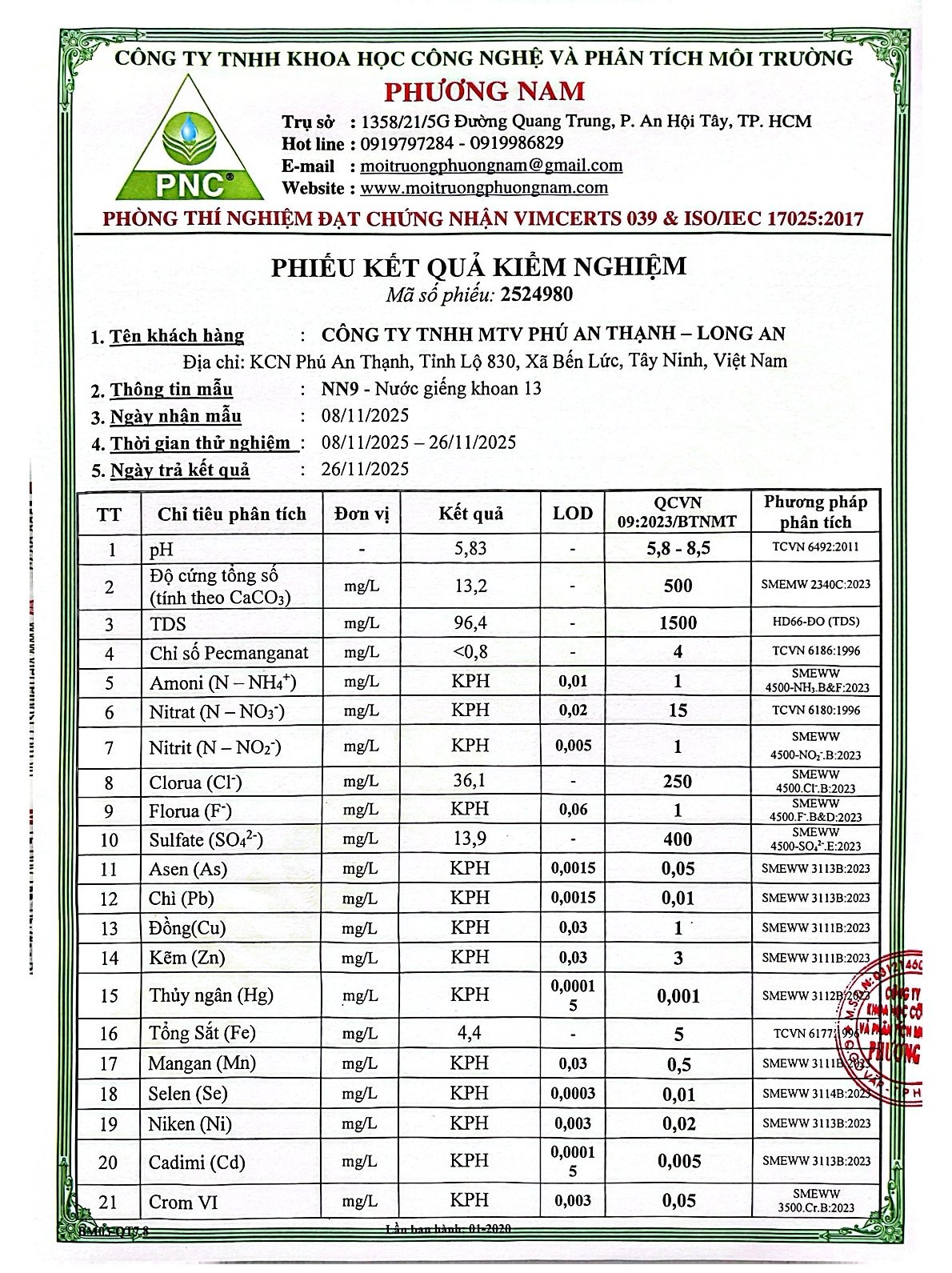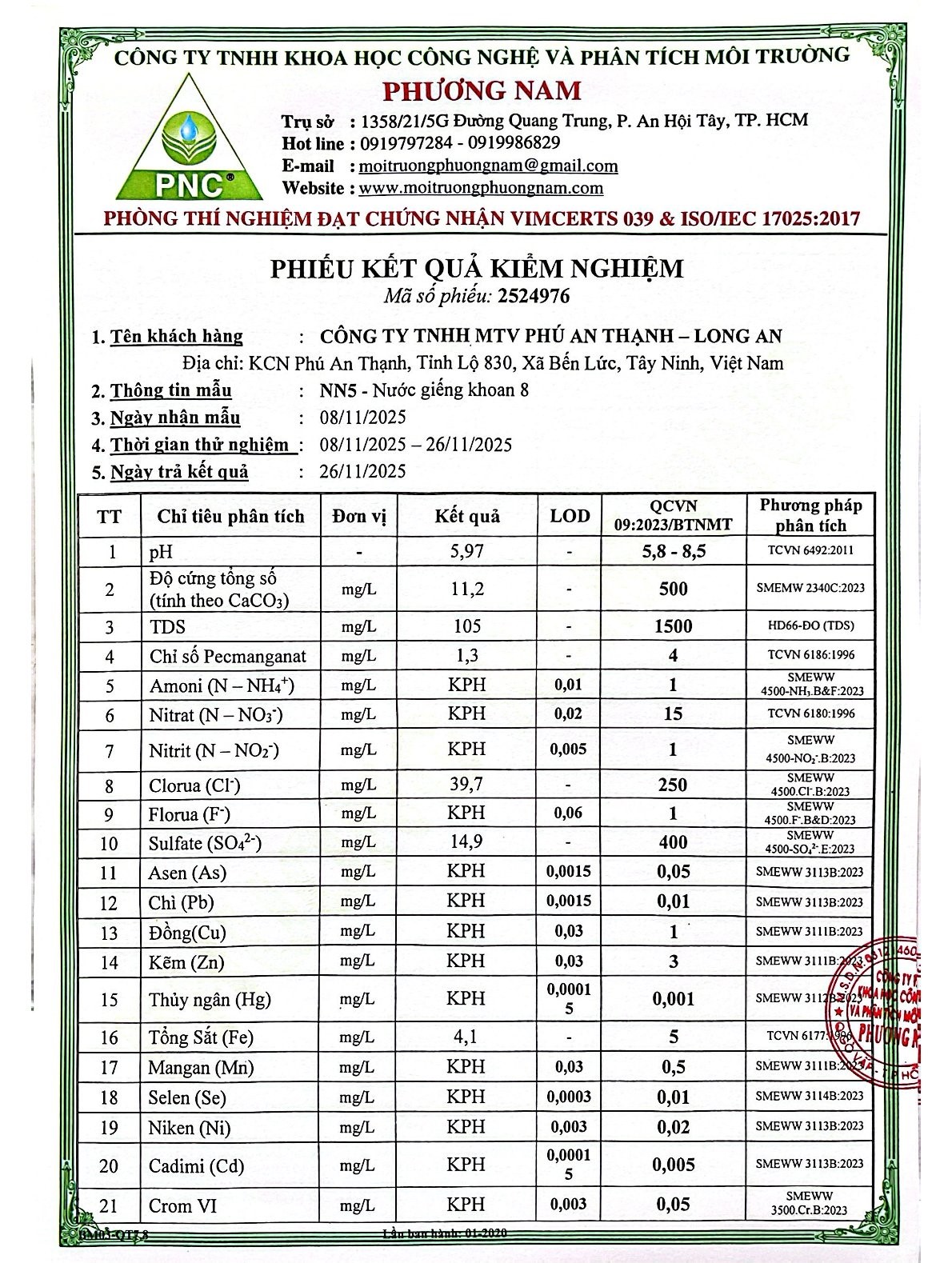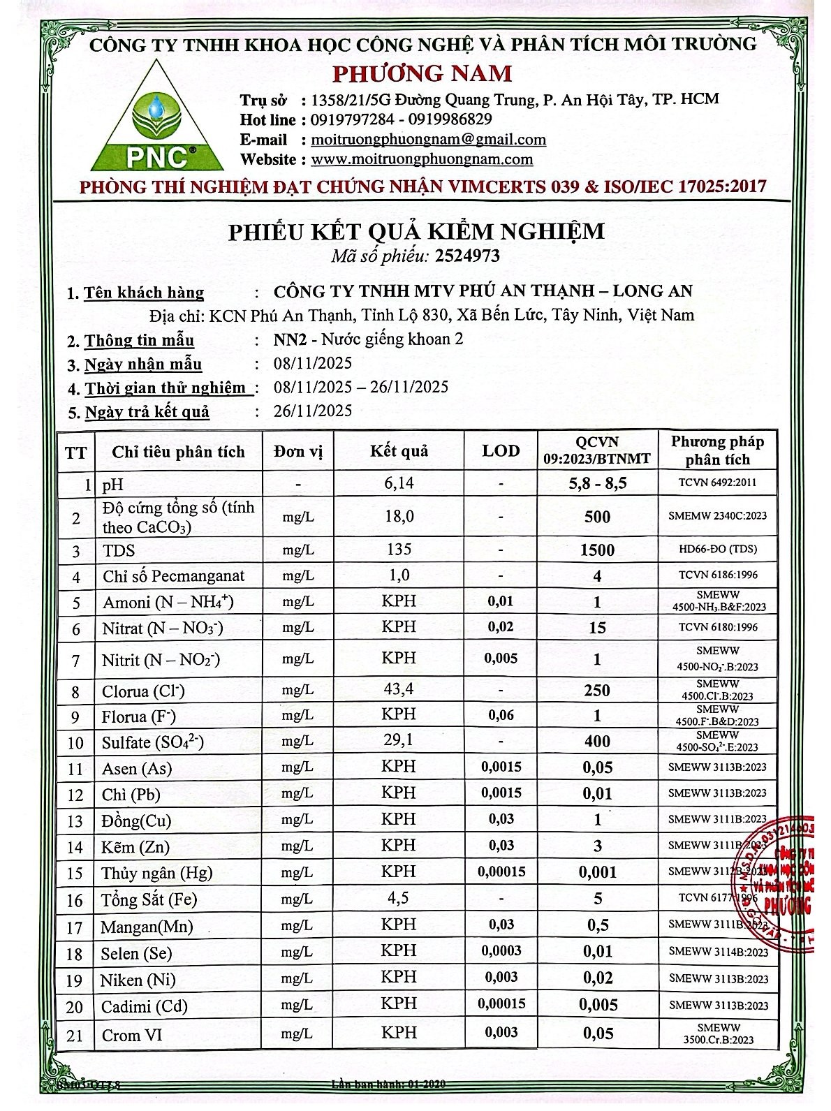 Kết Quả Nước Cấp Sau Xử Lý