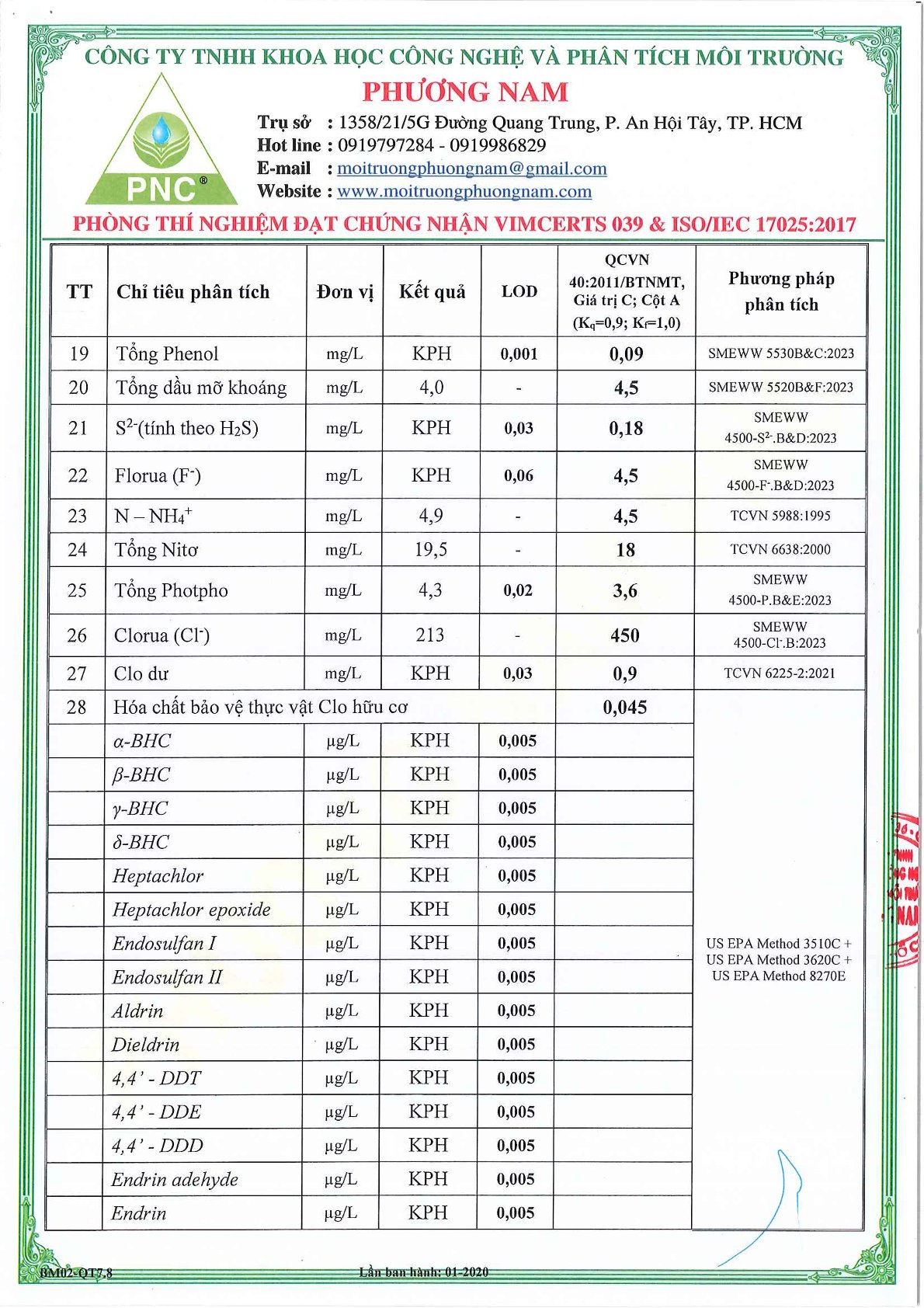 Chất lượng nước thải định kỳ