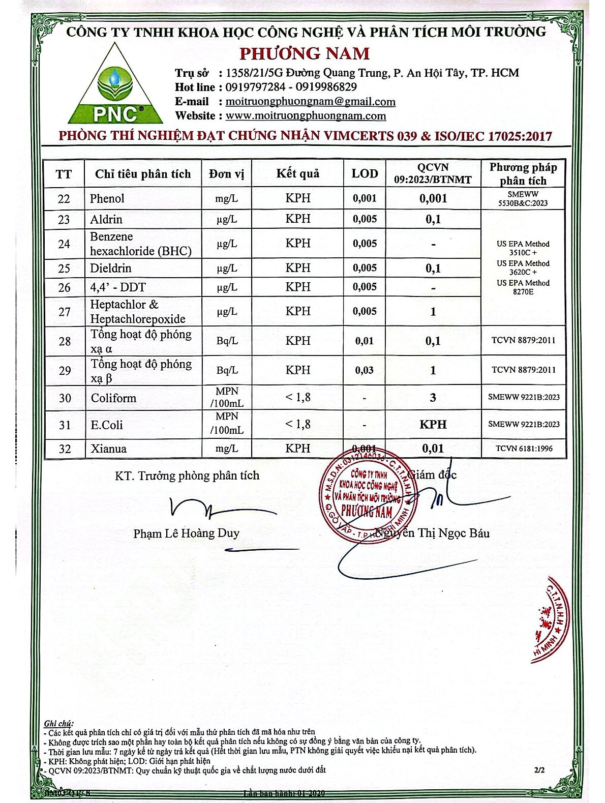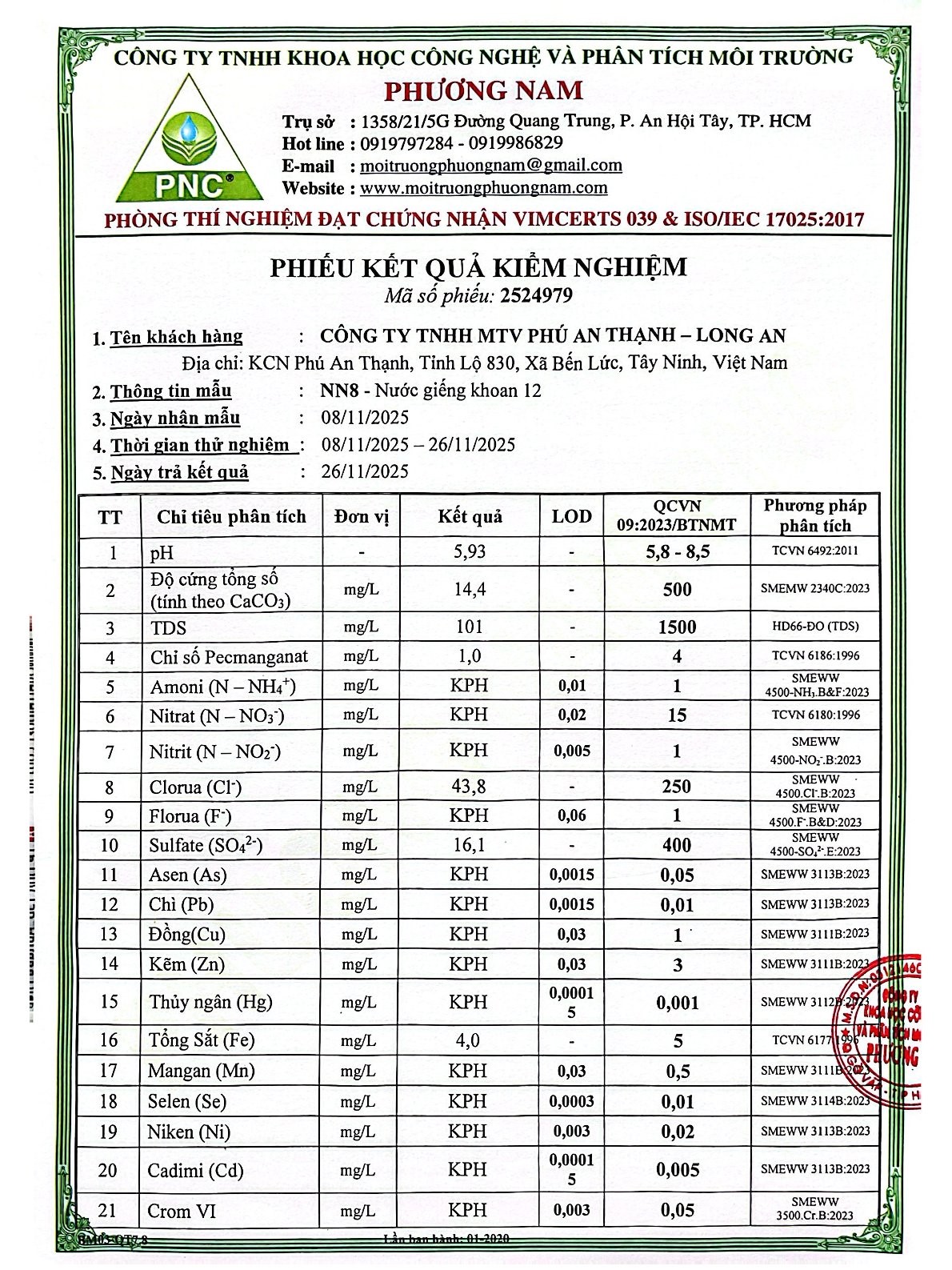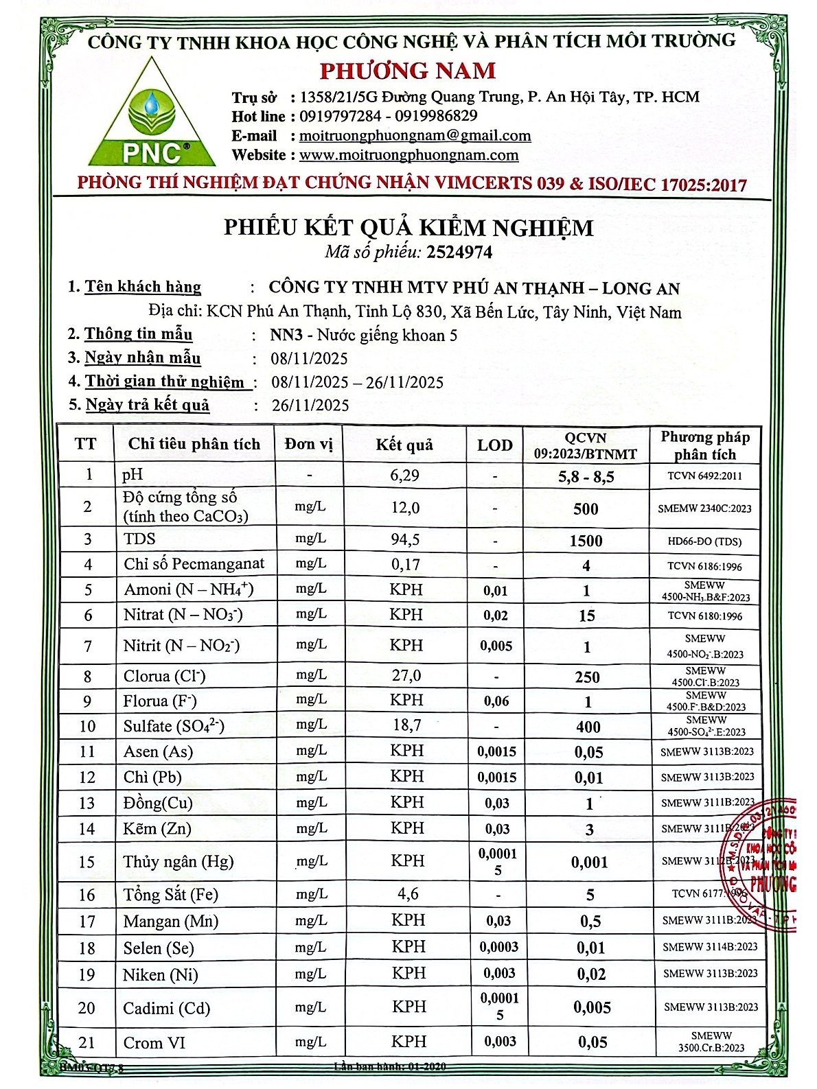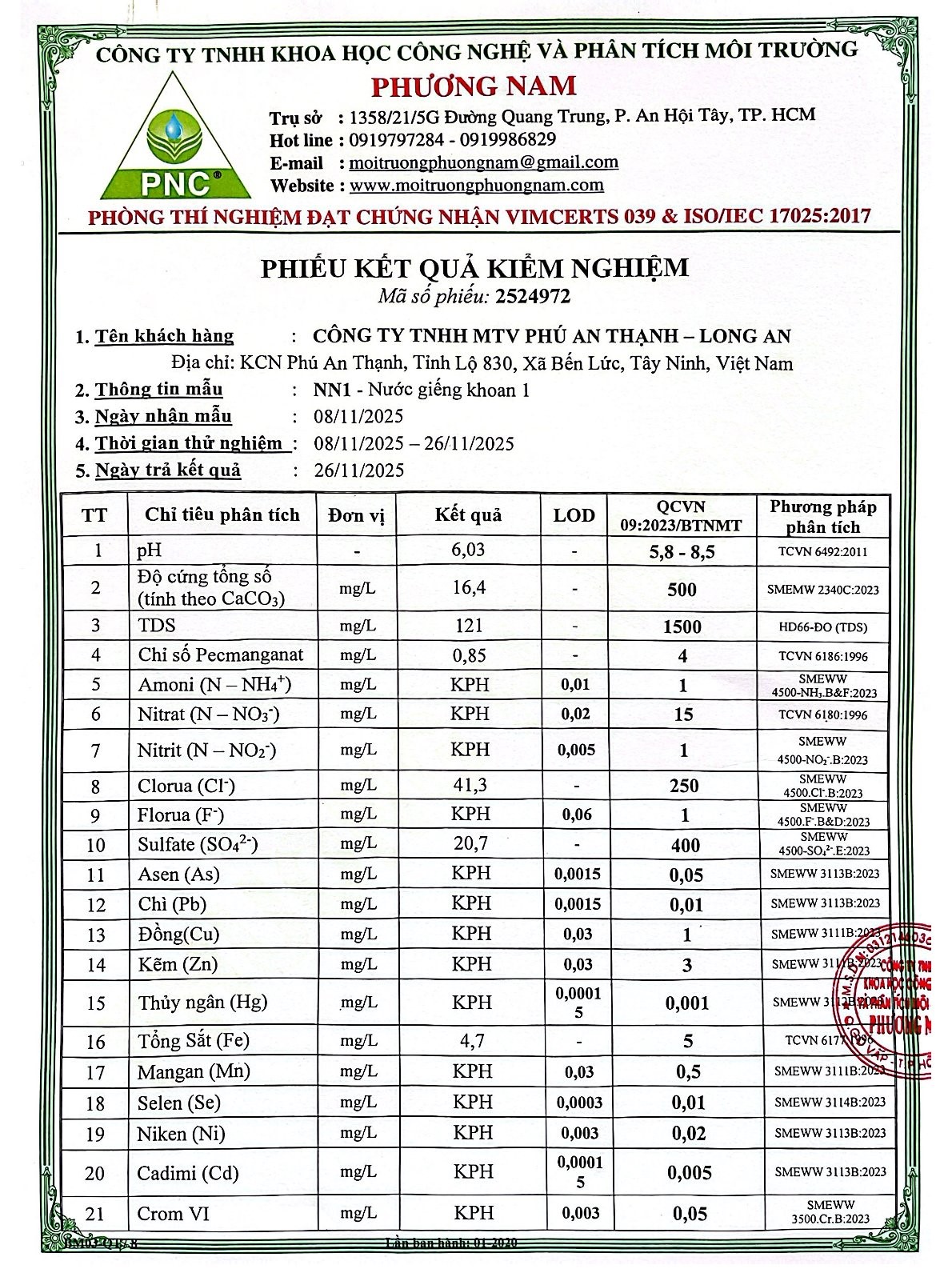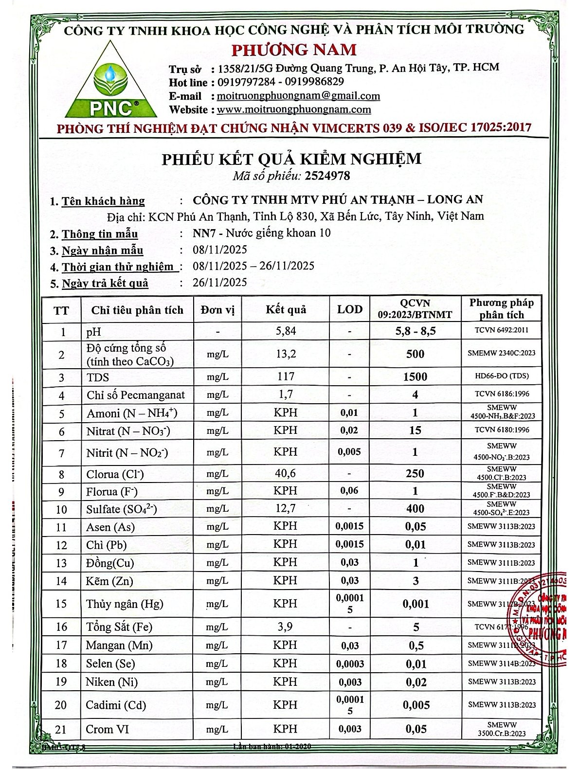 Kết Quả Nước Cấp Sau Xử Lý