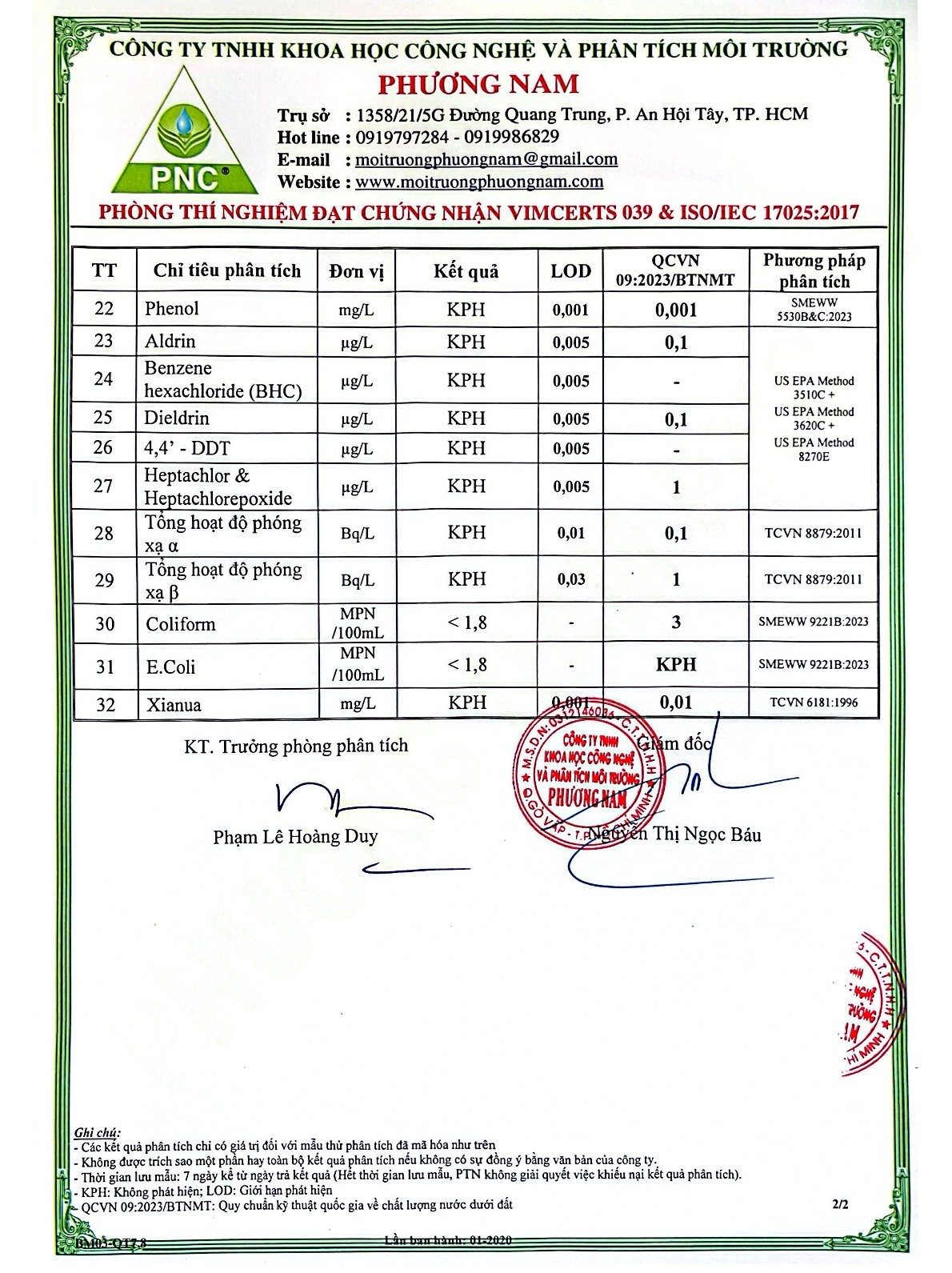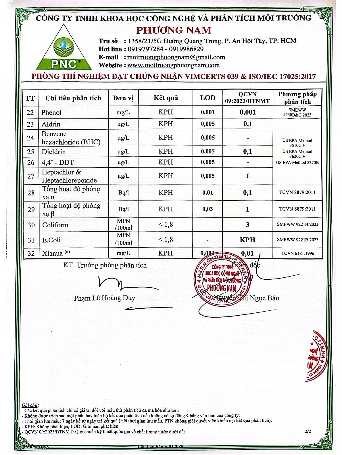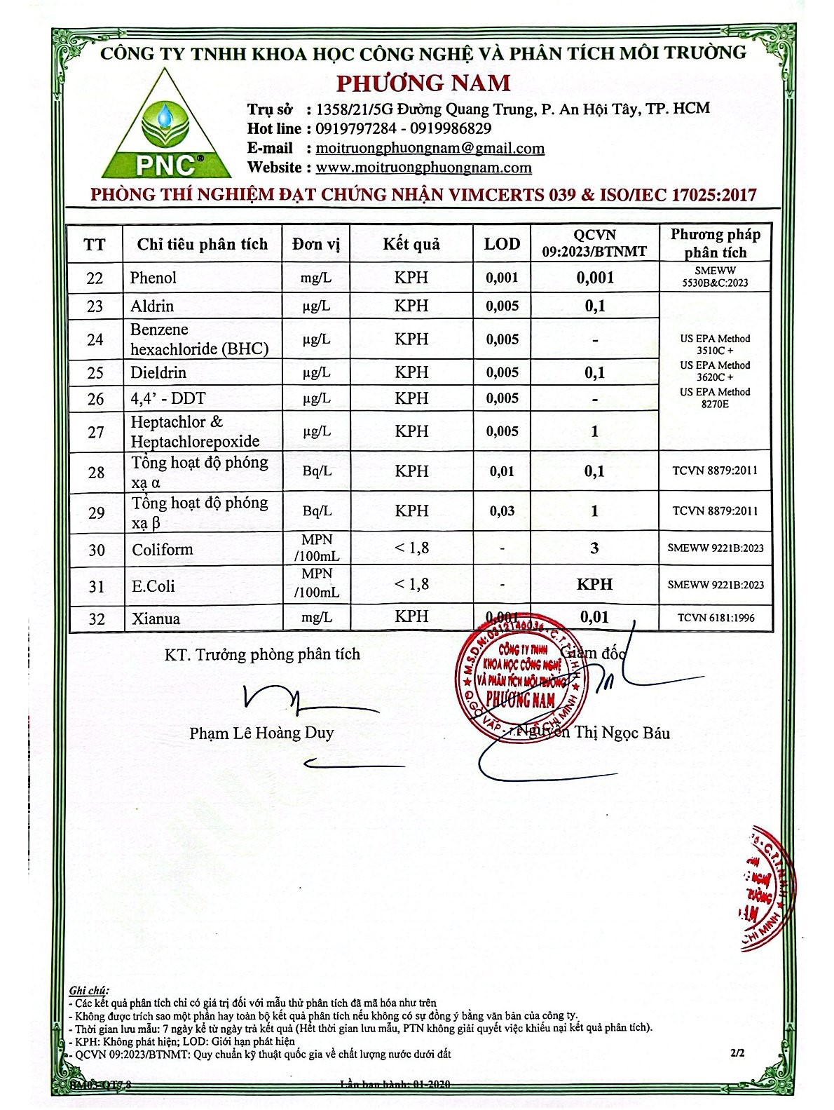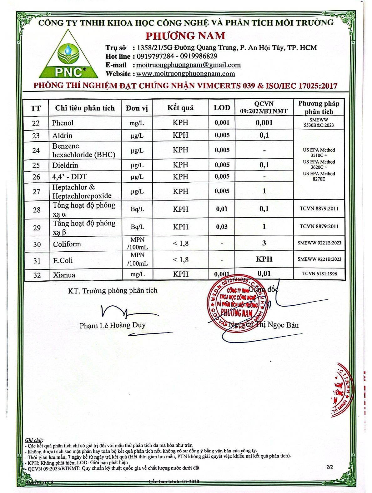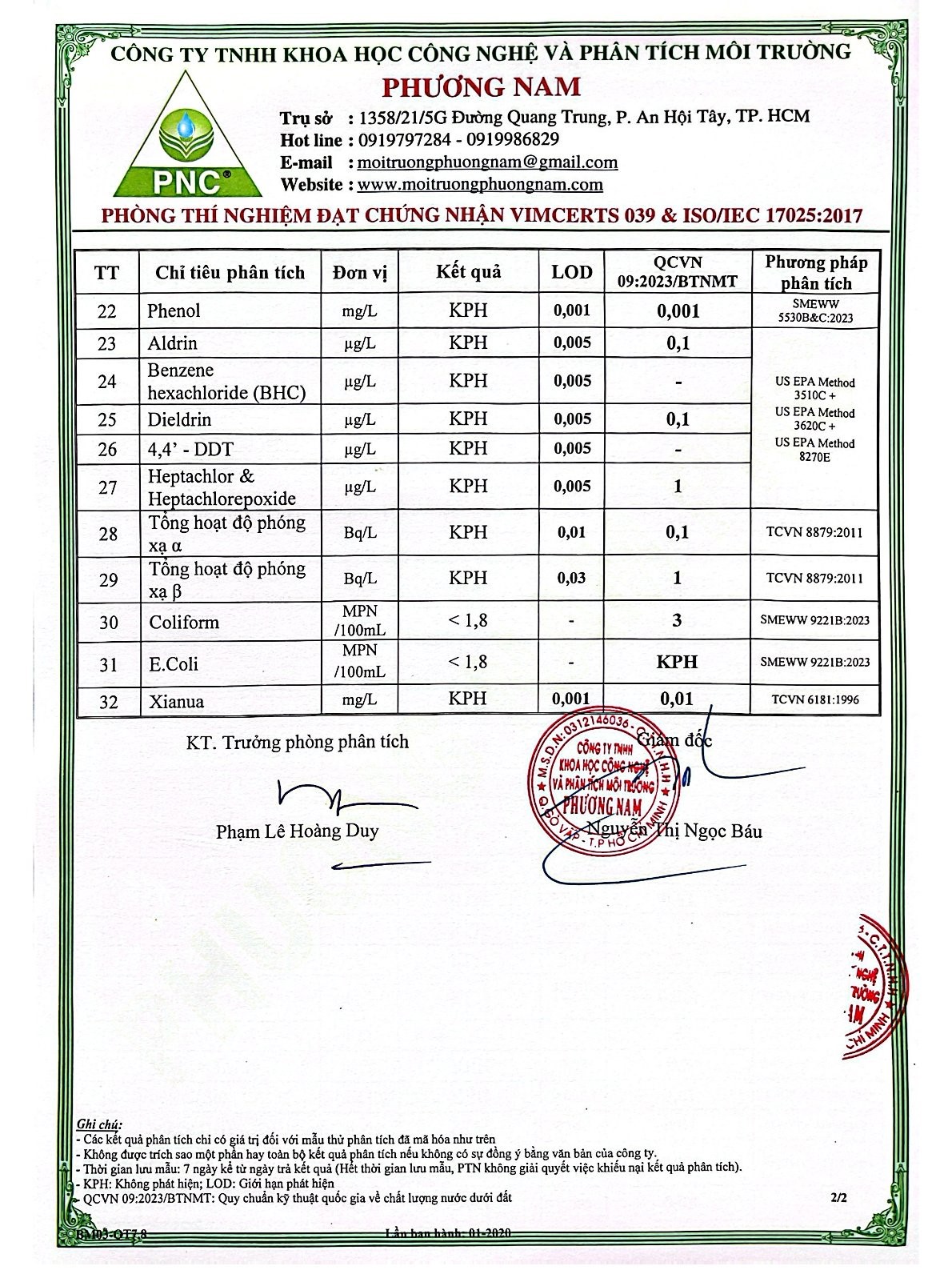 Kết Quả Nước Cấp Sau Xử Lý